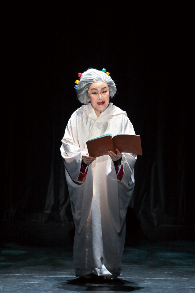 白髪で恰幅がよく、派手な着物を着た紅子の姿は、アニメ版、映画版でもおなじみですが、白石加代子演じる紅子の存在感はやはり格別。クセのある台詞回しや不敵な笑い声に、客席から歓声が上がることも。すべての客役を演じ、終幕にはライバル店「たたりめ堂」のよどみ役でキュートかつ怪しい魅力を振りまいた大原櫻子の活躍ぶりも強く印象に残りました。