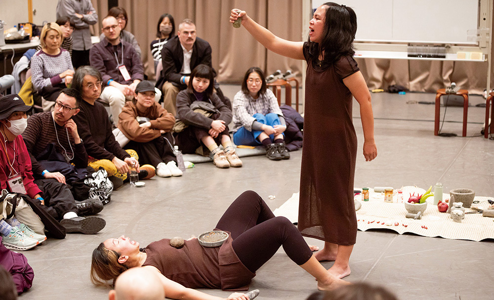 石を意味するBatuというタイトルは東南アジアのマレー系家庭において調味料サンバルをつくるのに使うすり鉢とすりこぎの材質から。材料をすりつぶす動きは女性の身体への振り付けとなり、調理のための空間は女性同士で知恵を共有し継承する場となります。今回の上演では観客も調理に参加し、実際にサンバルが振る舞われる場面も。完成版は2026年に初演予定。